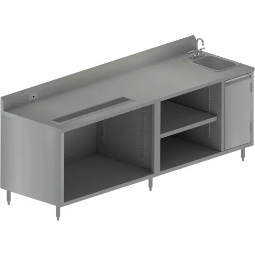 BK Resources Stainless Beverage Table, Sink On Right, 5"Riser Electric Outlet 30X96