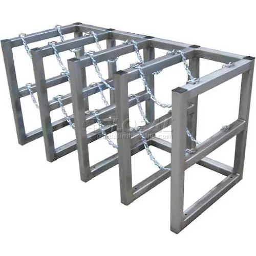 Stainless Steel Cylinder Tube Rack, 4 Wide x 2 Deep, 58"W x 26"D x 30"H,8 Cylinder Cap.