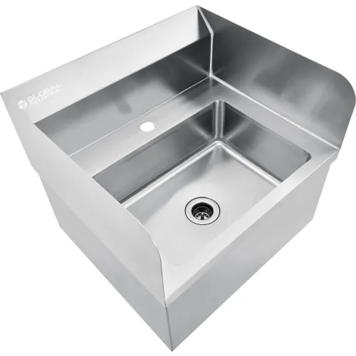 Global Industrial™ Stainless Steel Hands Free Wall Mount Sink W/Splash Guards, 14"x10"x5" Deep