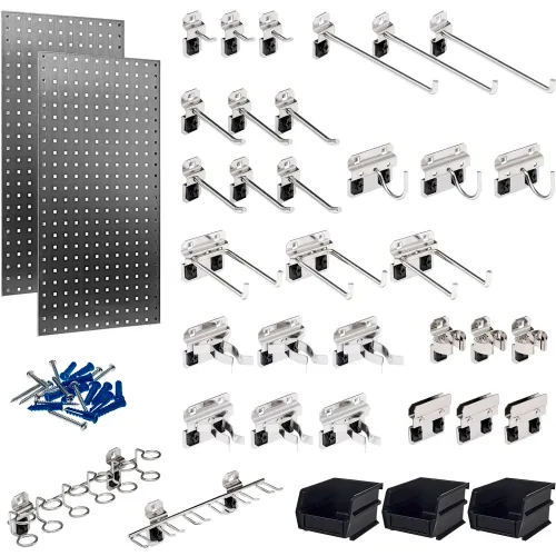 Stainless Steel LocBoard 18"x36" (2 Pack), (32 Pc) LocHook & (3Pc) Bin Assortment