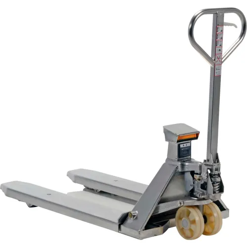 Vestil Manual Pallet Jack Scale Truck, Stainless, 5000 lb. Cap, 27-1/2"W x 45-11/16"L Forks
