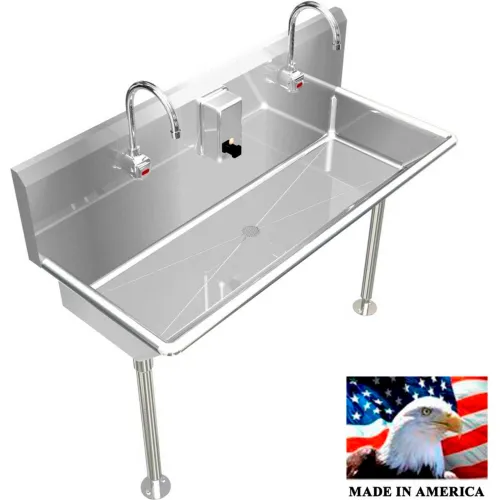 BSM Inc. Stainless Steel Sink, 2 Station w/Electronic Faucets Straight Legs 42" L X 20" W X 8" D