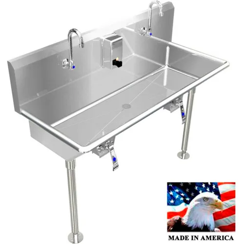 BSM Inc. Stainless Steel Sink, 2 Station w/Knee Operated Faucets Straight Legs 48" L X 20" W X 8" D