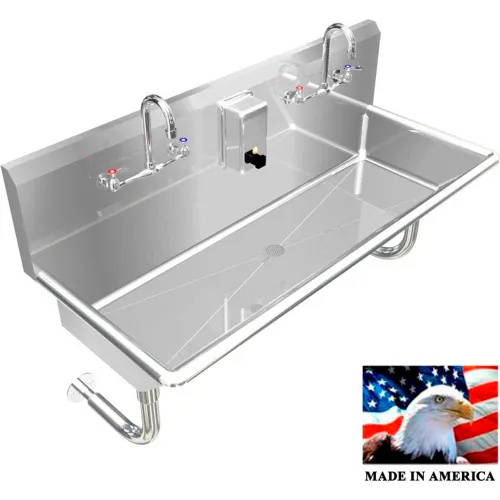 BSM Inc. Stainless Steel Sink, 2 Station w/Manual Faucets Round Tube Mounted 48" L X 20" W X 8" D