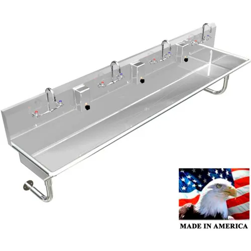 BSM Inc. Stainless Steel Sink, 4 User w/Manual Faucets, Round Tube Mounted 80" L X 20" W X 8" D