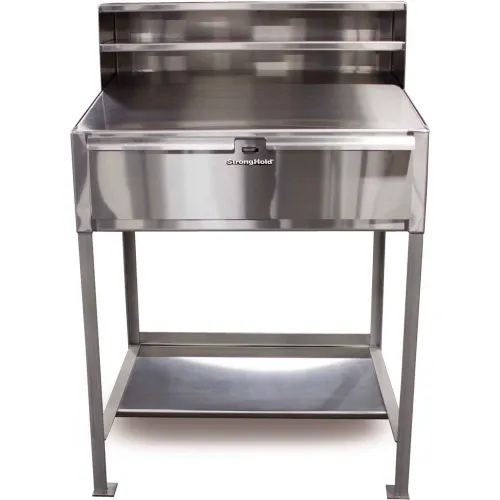 StrongHold Flat Surfaced Shop Desk, Pigeonhole Riser/Drawer, Shelf, 36"W x 28"D, Stainless Steel