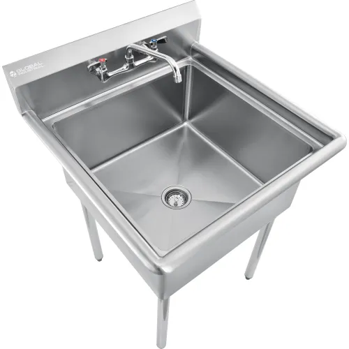 Global Industrial Stainless Steel Utility Sink W/Faucet & 8" Backsplash, 24"x24"x12" Deep