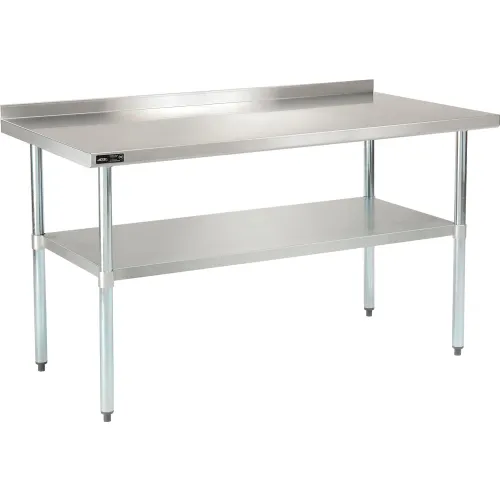 Global Industrial 430 Stainless Steel Table, 60 x 30", Undershelf, 2" Backsplash
