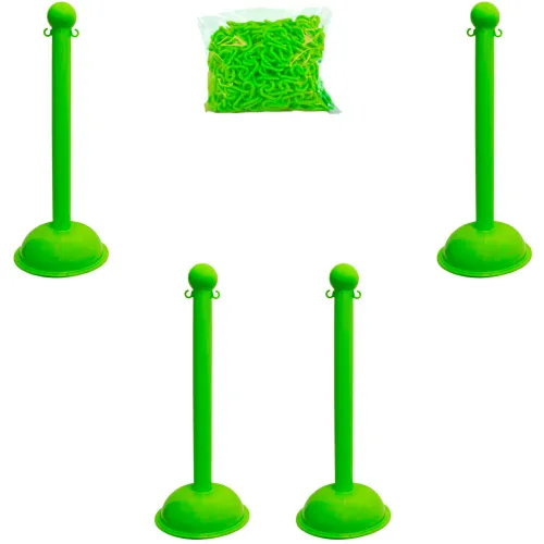 Mr. Chain Heavy Duty Plastic Stanchion Kit With 2"x50'L Chain, 41"H, Safety Green, 4 Pack