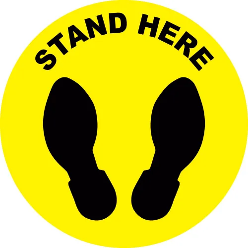 Stand Here Sign, 12'' Round, Vinyl Adhesive