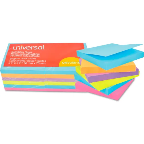 Universal One® Standard Self-Stick Bright Pads, 3 x 3, 4 Colors, 12 100-Sheet Pads/Pack