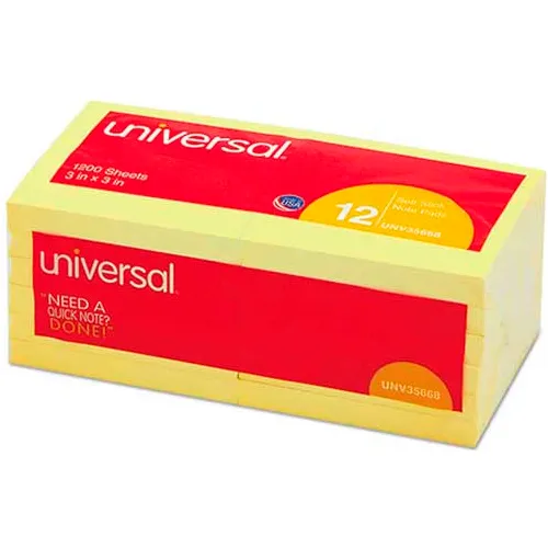 Universal® Standard Self-Stick Notes, 3 x 3, Yellow, 12 100-Sheet Pads/Pack
