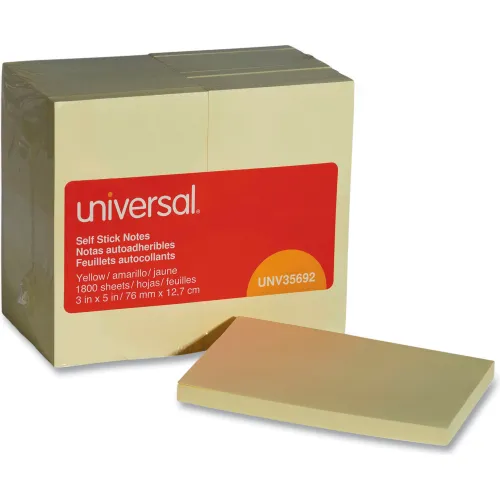 Universal® Standard Self-Stick Notes, 3 x 5, Yellow, 18 100-Sheet Pads/Pack