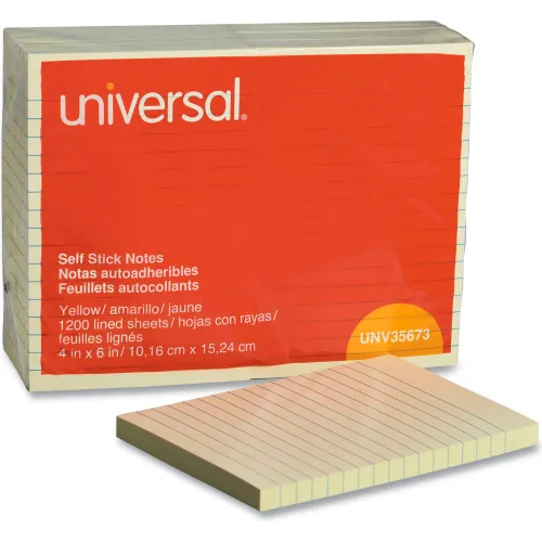 Universal® Standard Self-Stick Notes, 4 x 6, Lined, Yellow, 12 100-Sheet Pads/Pack