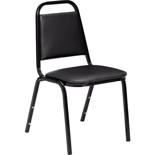 NPS Stacking Chair - 1-1/2" Vinyl Seat - Square Back - Black Seat with Black Frame - Pkg Qty 4