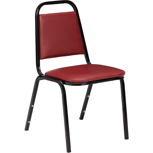 NPS Stacking Chair - 1-1/2" Vinyl Seat - Square Back - Burgundy Seat with Black Frame