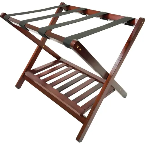 Standard Wood Luggage Rack with Shoe Shelf - Walnut Finish - Pkg Qty 4