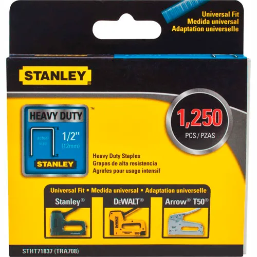 Stanley® STHT71837 Heavy-Duty Narrow Crown Staples 1/2" -1,250 Pack