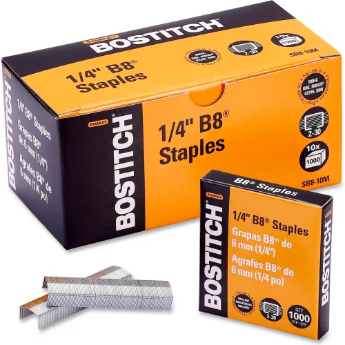 Stanley Bostitch® B8 PowerCrown™ Staples, 30 Sheet Capacity, 1/4" Leg Length, 10000/Box