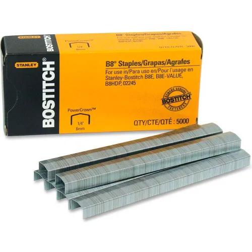 Stanley Bostitch® B8 PowerCrown™ Staples, 30 Sheet Capacity, 1/4" Leg Length, 5000/Box