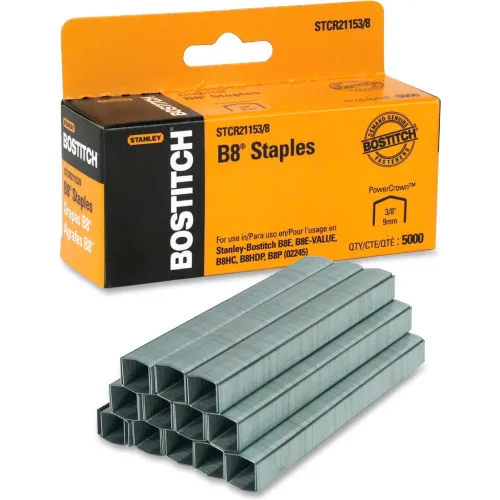 Stanley Bostitch® B8 PowerCrown™ Staples, 45 Sheet Capacity, 3/8" Leg Length, 5000/Box