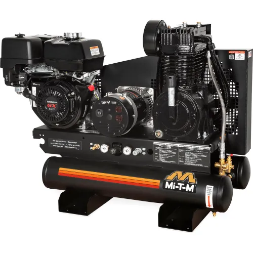Mi-T-M® Stationary Air Compressor/Generator Combo, 8 Gal. Cap., 389cc Honda OHV, Recoil Start