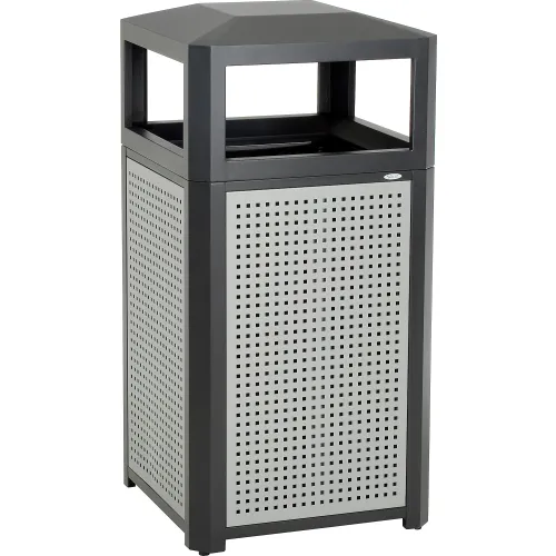 Safco® Outdoor Perforated Steel Trash Can, Side Opening, 38 Gallon, Black