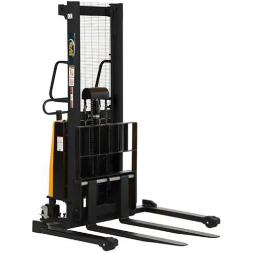 Vestil Steel Adjustable Stacker with Powered Lift, 63" Lift, 3000 lb. Capacity