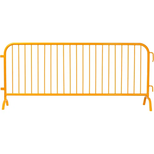 Global Industrial Steel Crowd Control Barrier, 8-1/2'L x 43"H, Bridge Feet, Powder Coat Yellow