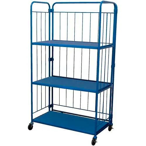 Vestil Steel Folding Container Shelf Truck w/2 Shelves, 990 lb. Capacity, 34"L x 18"W x 58"H, Blue