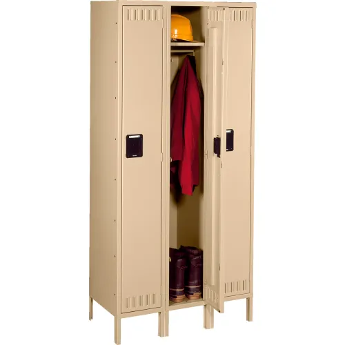 Tennsco® 1-Tier 3 Door Locker w/ Legs, 36"W x 12"D x 78"H, Sand, Assembled