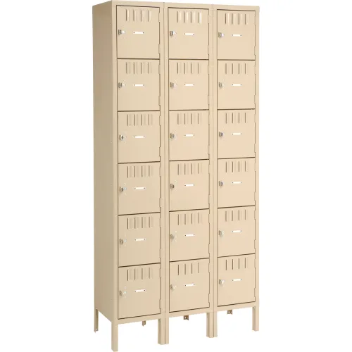 Tennsco® 6-Tier 18 Door Box Locker w/ Legs, 36"W x 12"D x 78"H, Sand, Assembled