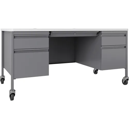 Lorell Fortress Steel Mobile Teachers Desk - 60" x 30" - White/Platinum