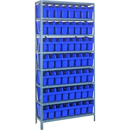 Quantum 1275-SB801 Steel Shelving with 56 8"H Plastic Shelf Bins Blue, 36x12x75-SB8 Shelves