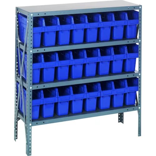 Quantum 1839-SB803 Steel Shelving with 24 8"H Plastic Shelf Bins Blue, 36x18x39-SB4 Shelves