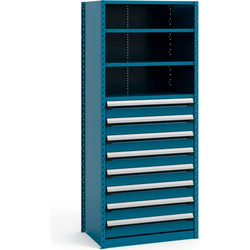 Rousseau Metal Steel Shelving 37-5/8"Wx24"Dx87"H Closed 5 Shelf 8 Drawer Everest Blue