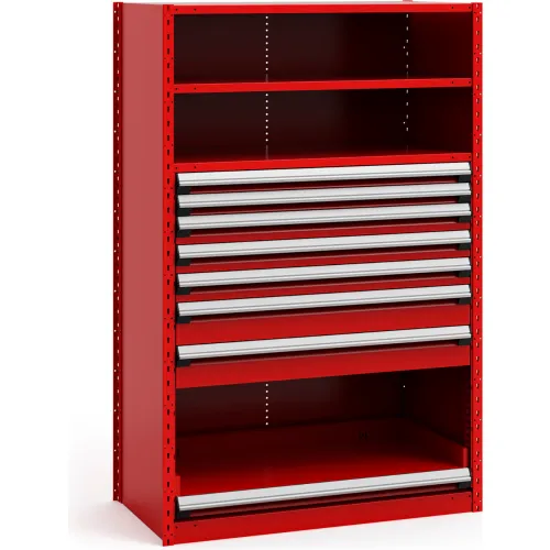Rousseau Metal Steel Shelving 48-5/8"Wx24"Dx75"H Closed 4 Shelf 7 Drawer Red