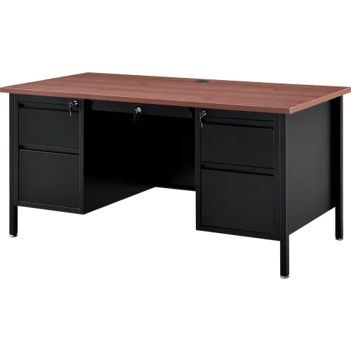 Interion® Steel Teachers Desk, 60"W x 30"D, Mahogany Top with Black Frame