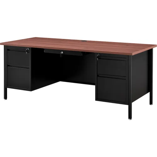 Interion® Steel Teachers Desk, 72"W x 30"D, Mahogany Top with Black Frame