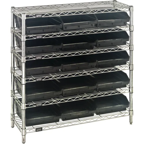Quantum Steel Wire Shelving with 15 Conductive 4"H Bins Black - 6 Shelves - 36"W x 12"D x 36"H