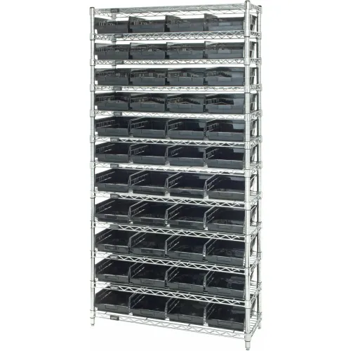 Quantum Steel Wire Shelving with 44 Conductive 4"H Bins Black - 12 Shelves - 36"W x 24"D x 74"H