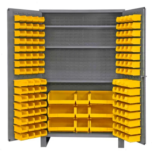 Durham Storage Bin Cabinet JC-137-3S-95 - 137 Yellow Hook-On Bins 3 Adj. Shelves 48"W x 24"D x 78"H