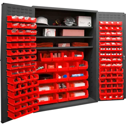 Durham Storage Bin Cabinet 3502-138-3S-1795 - 138 Red Hook-On Bins 3 Adj. Shelves 48"Wx24"Dx72"H