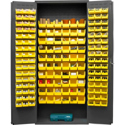 Durham Storage Bin Cabinet 3603-156B-95 - 156 Yellow Hook-On Bins 36"W x 18"D x 84"H