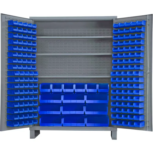 Durham Storage Bin Cabinet SSC-185-3S-5295 - 185 Blue Hook-On Bins 3 Adj. Shelves 60"W x 24"D x 84"H