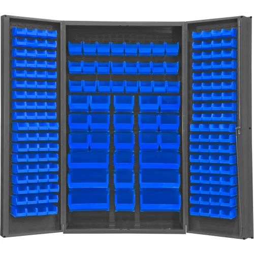 Durham Storage Bin Cabinet SJC-BDLP-192-5295 - 192 Blue Hook-On Bins 48"W x 24"D x 84"H