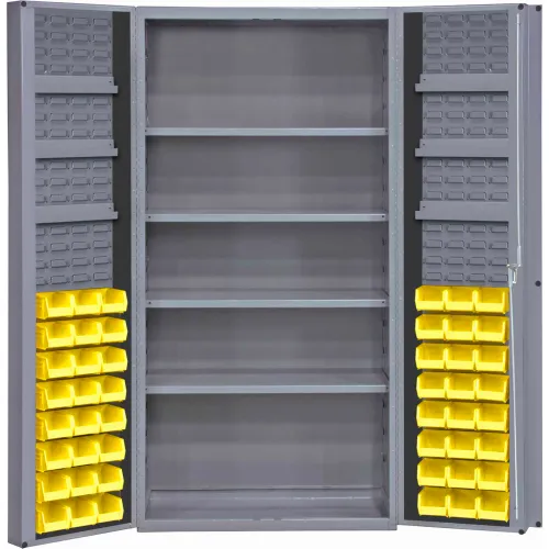 Durham Storage Bin Cabinet DC36-48-4S6DS-95 - 48 Yellow Hook-On Bins 4 Adj. Shelves 36"Wx24"Dx72"H