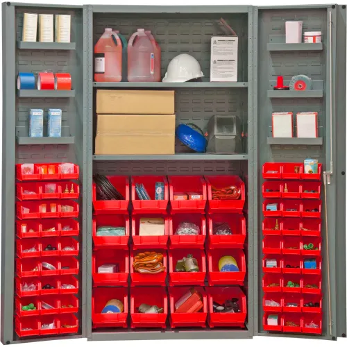 Durham Storage Bin Cabinet DC36-642S6DS-1795 - 64 Red Hook-On Bins 2 Adj. Shelves 36"W x 24"D x 72"H