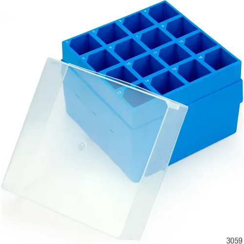 Storage Box With Lid For 50mL Centrifuge Tubes, 16 Place (4X4), Blue Base And Clear Lid, 4/Pack