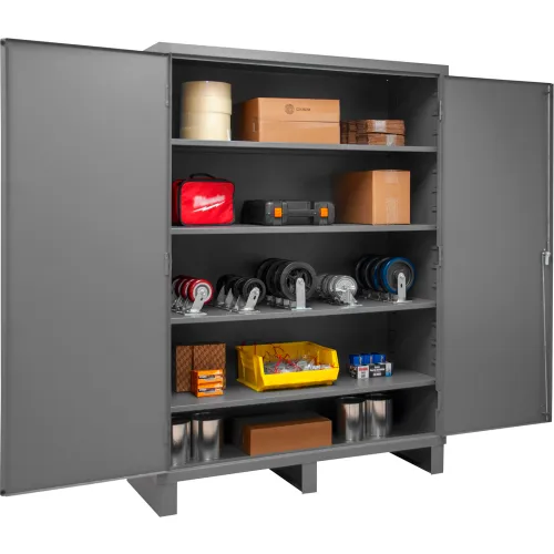 Durham Mfg.® Storage Cabinet, 16 Ga., 4 Adj. Shelves, 60"W x 24"D x 84"H, Lockable, Gray